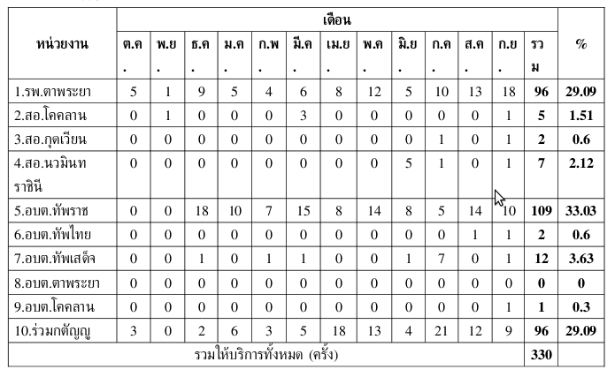 ตารางที่ 1  แสดงการให้บริการของหน่วยบริการการแพทย์ฉุกเฉิน (ครั้ง) ปีงบประมาณ 2549