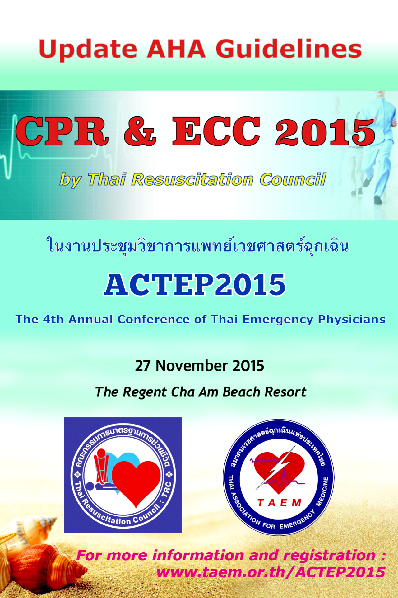 Update CPR Guidelines 2015 by TRC ในงานประชุมวิชาการแพทย์เวชศาสตร์ฉุกเฉินประจำปี 2558 ซึ่งเป็นอีกหนึ่งไฮไลท์ในงานที่ทางสมาคมเวชศาสตร์ฉุกเฉินแห่งประเทศไทย ร่วมกับคณะกรรมการมาตรฐานการช่วยชีวิต (Thai Resuscitation Council ; TRC) จัดขึ้นเพื่ออัพเดท ความรู้ในการช่วยชีวิตขั้นพื้นฐานและขั้นสูง ในปี ค.ศ. 2015 โดยปกติแล้วจะมีการอัพเดททุก 5 ปี ซึ่งการประชุมวิชาการครั้งน้ีเป็น การประชุมวิชาการแรก ๆ ที่มีการพูดถึงข้อมูลใหม่น้ี โดยมีหัวข้อดังนี้