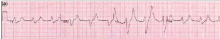 Ventricular tachycardia (VT)VF ในส่วนของ VTต้องแยกจาก broad QRS complex sine wave pattern ให้ดี แต่ VT/VF มักเกิดตามหลัง sine wave pattern อย่างรวดเร็ว และมักเกิดเมื่อ serum K ≥ 8.0 mmol/L อย่างไรก็ตามมีรายงานว่าจะเกิดช่วงใดก็ได้ระหว่าง peaked T wave และ sine wave pattern14 VT เกิดขึ้นได้จากภาวะ hyperkalemia แม้ว่าจะไม่บ่อยเท่า hypokalemia ถ้าสงสัยควรต้องรีบรักษาทันที นอกเหนือจากกระบวนการกู้ชีพขั้นสูงเช่นเดียวกับ PEA/Asystole